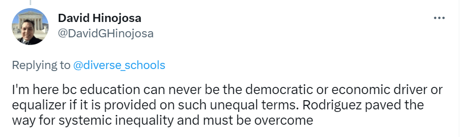 The significance of the case was apparent in the intros. As David Hinojosa writes, it was a devastating blow to those who viewed public education as preparation for democratic citizenship or economic mobility.