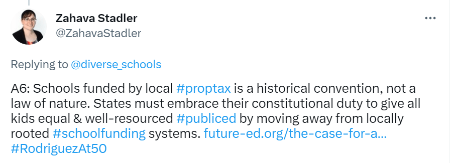 Joshua Weishart, a law professor at West Virginia University, noted that the state-level effort following Rodriguez at least came with the benefit of forcing “better conceptions of educational equality & freedom.” He shared a paper that explores this concept in more detail.